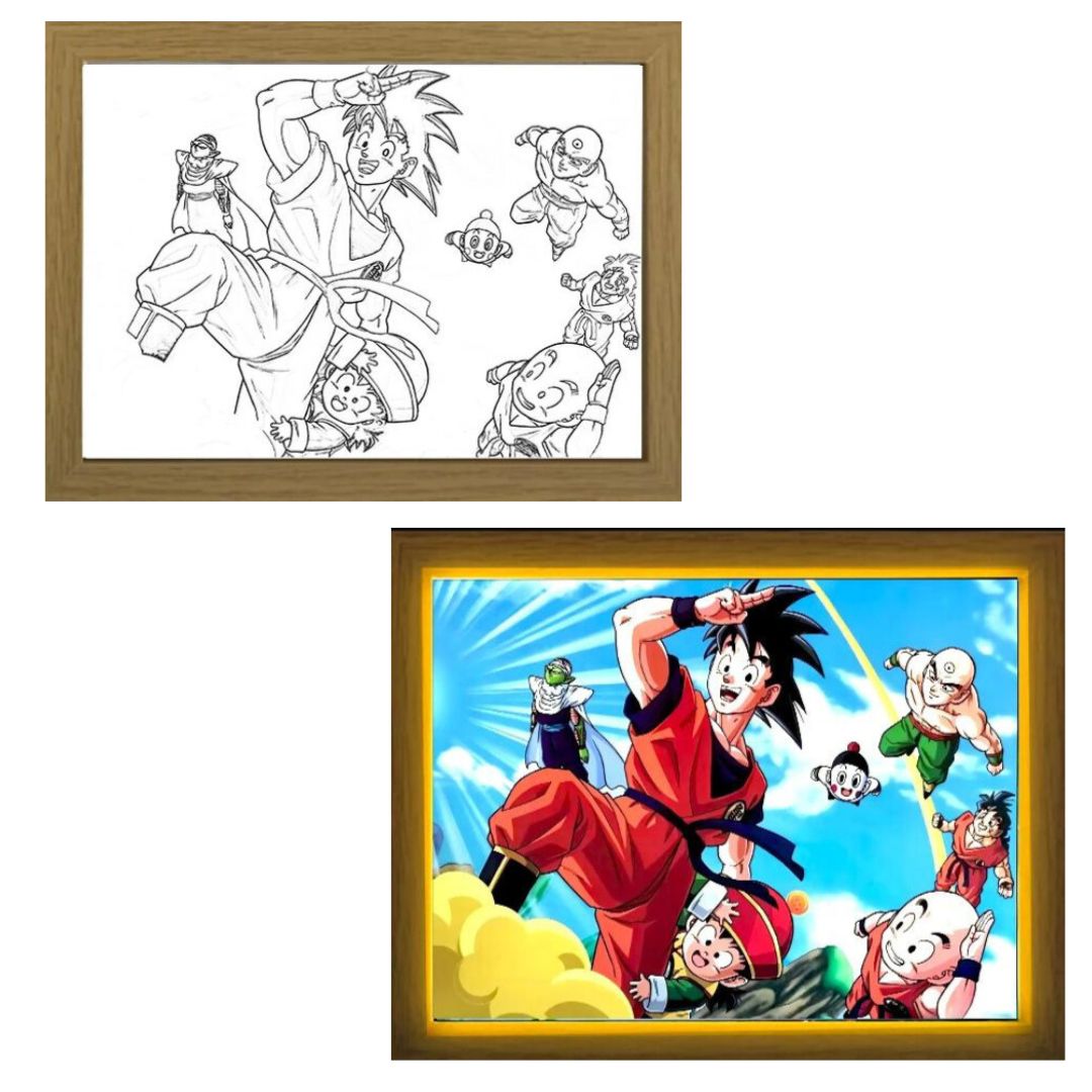 Ilumina tu espacio con nuestro exclusivo cuadro LED de Dragon Ball de 3 colores (luz Fría/luz natural/luz cálida). Con colores vibrantes y detalles precisos, es perfecto para rememorar tu infancia. Incluye cable USB para una instalación sencilla y segura. El tamaño de nuestro cuadro es de 23*17cm